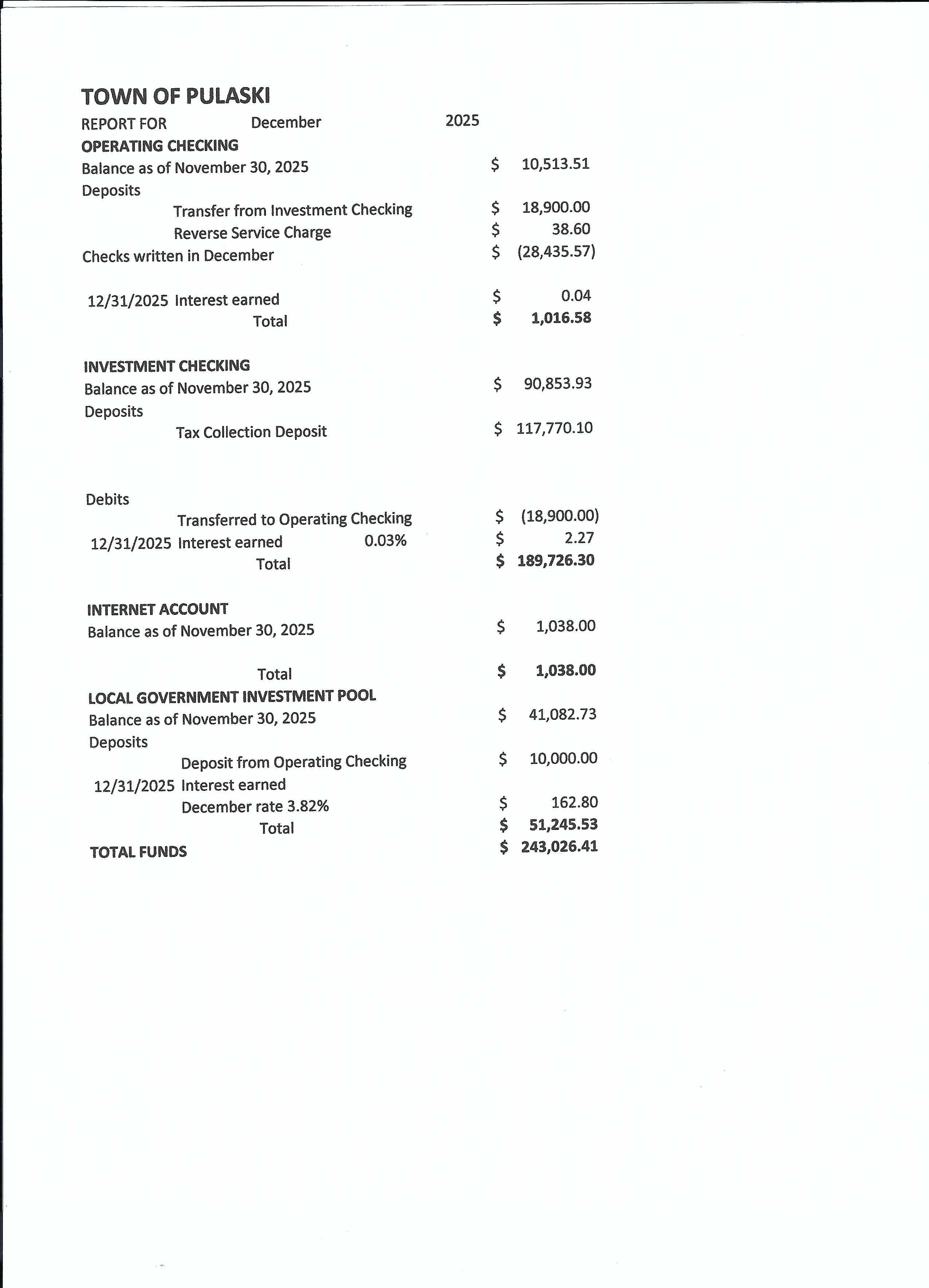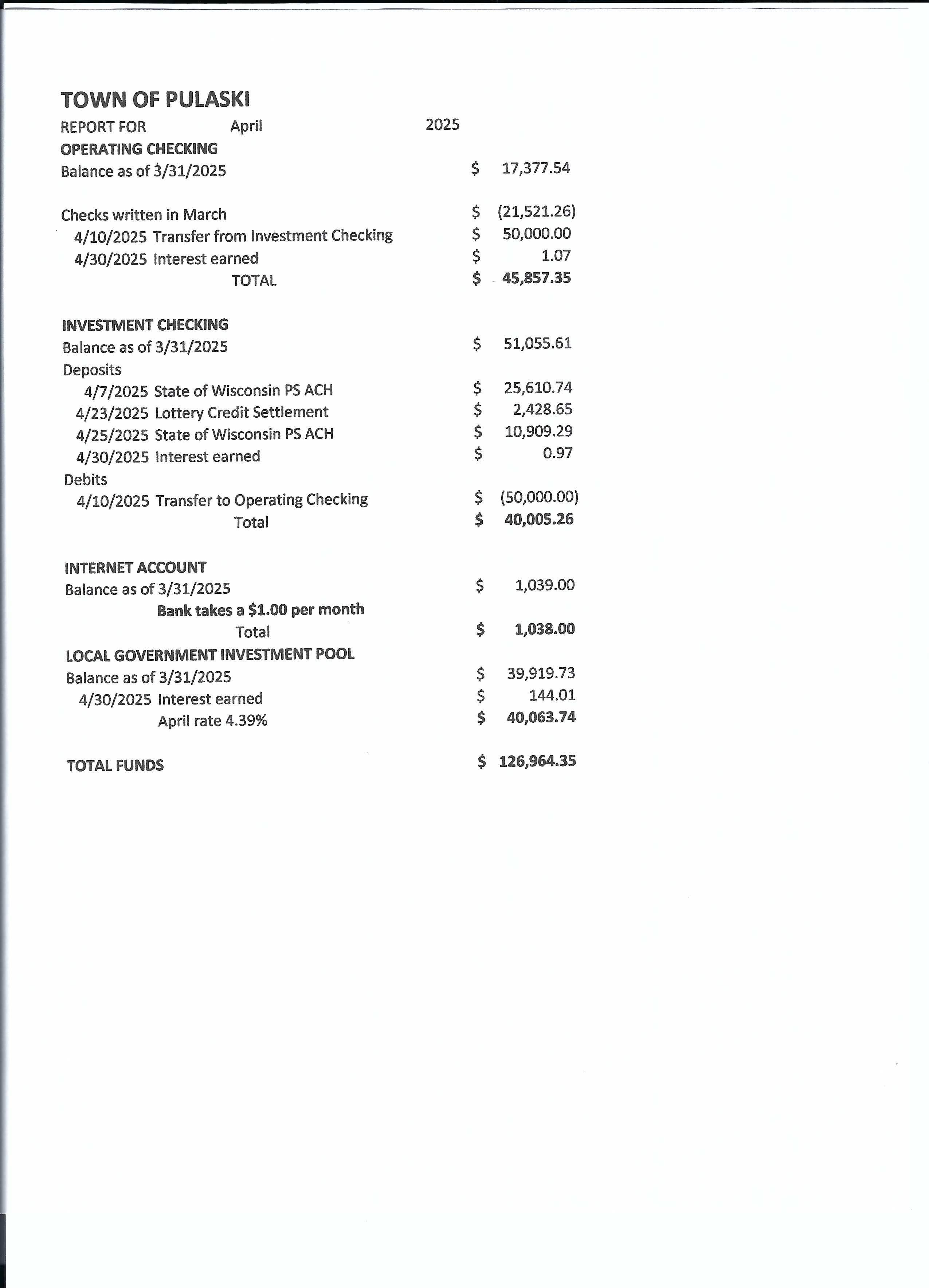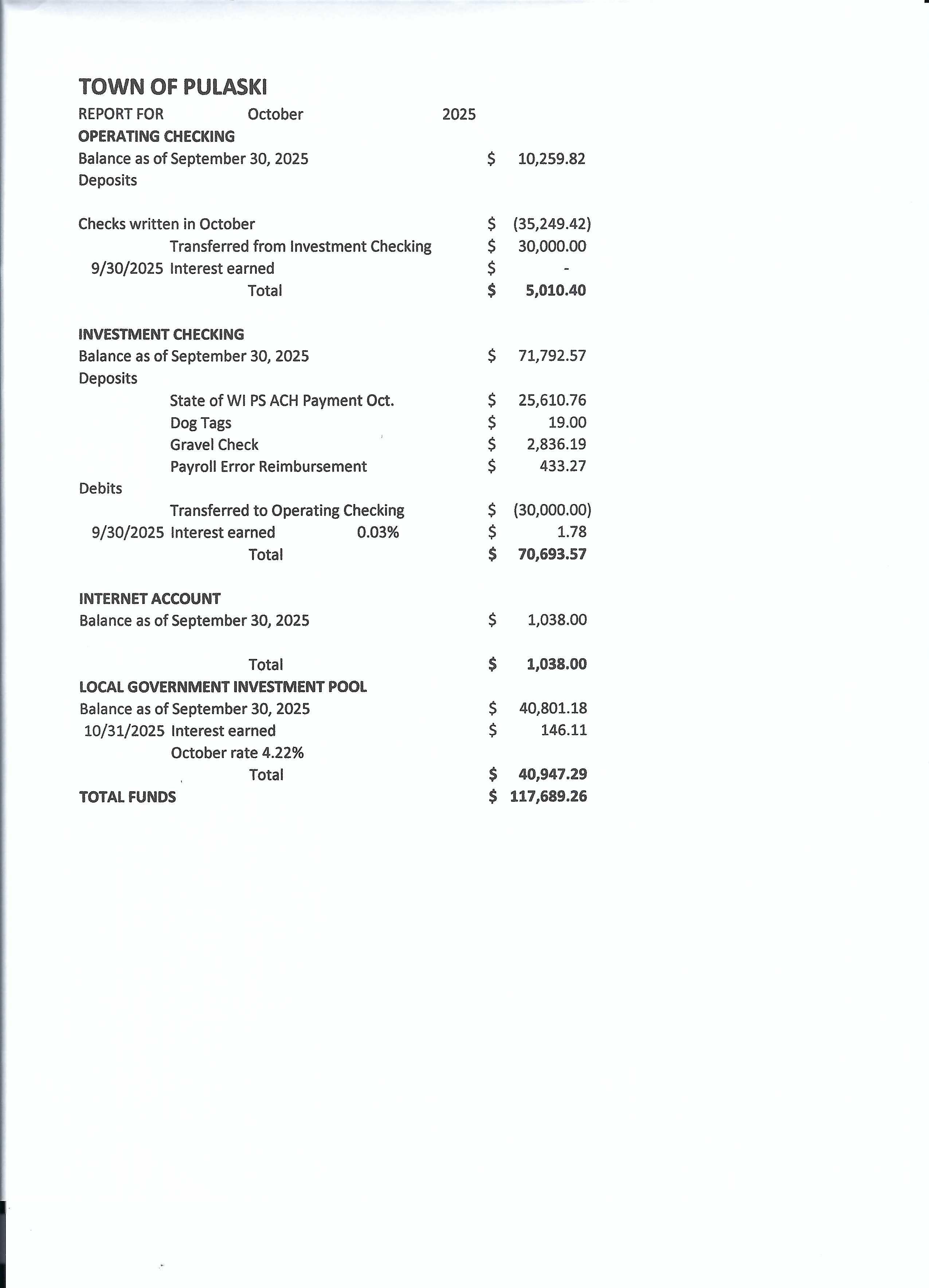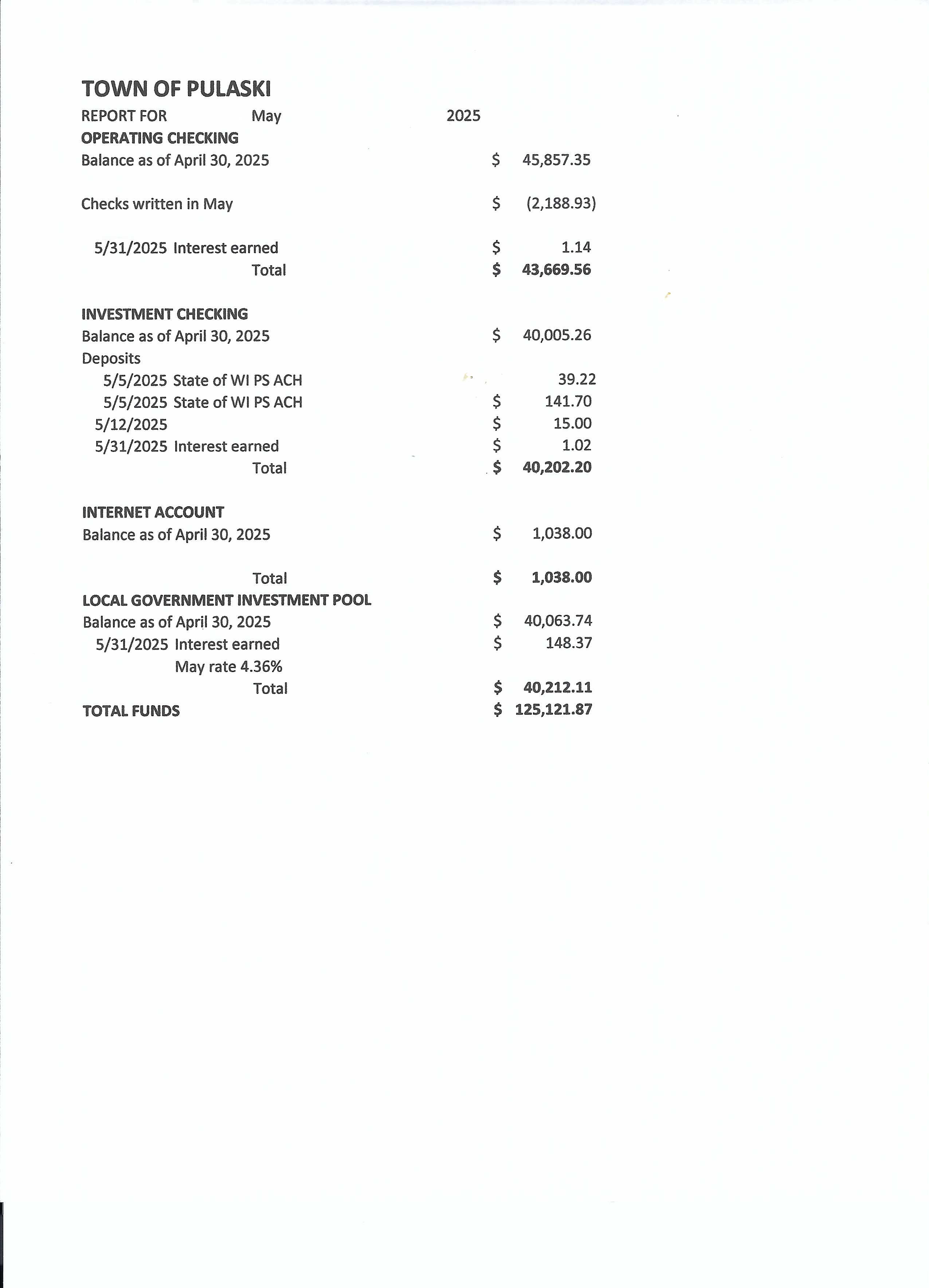 For Town of Pulaski questions regarding budget numbers contact Casey Michek, Treasurer or Sheila Wardell, Clerk