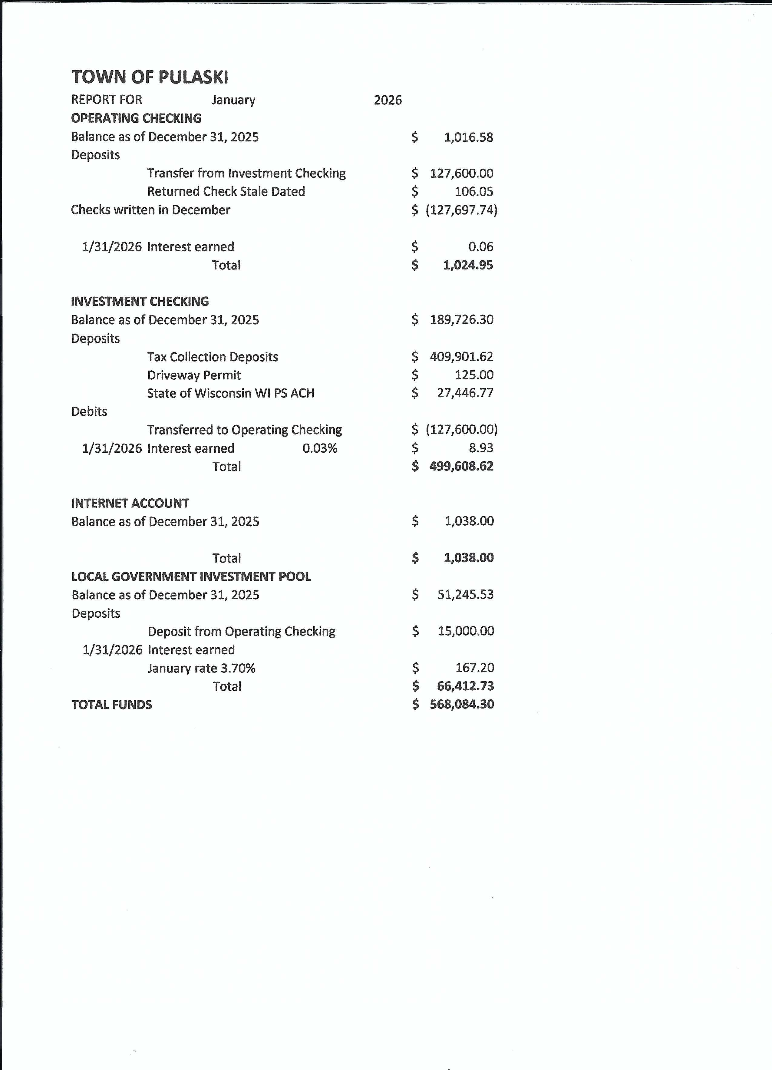 January 2026 Treasurer and Check Detail Report